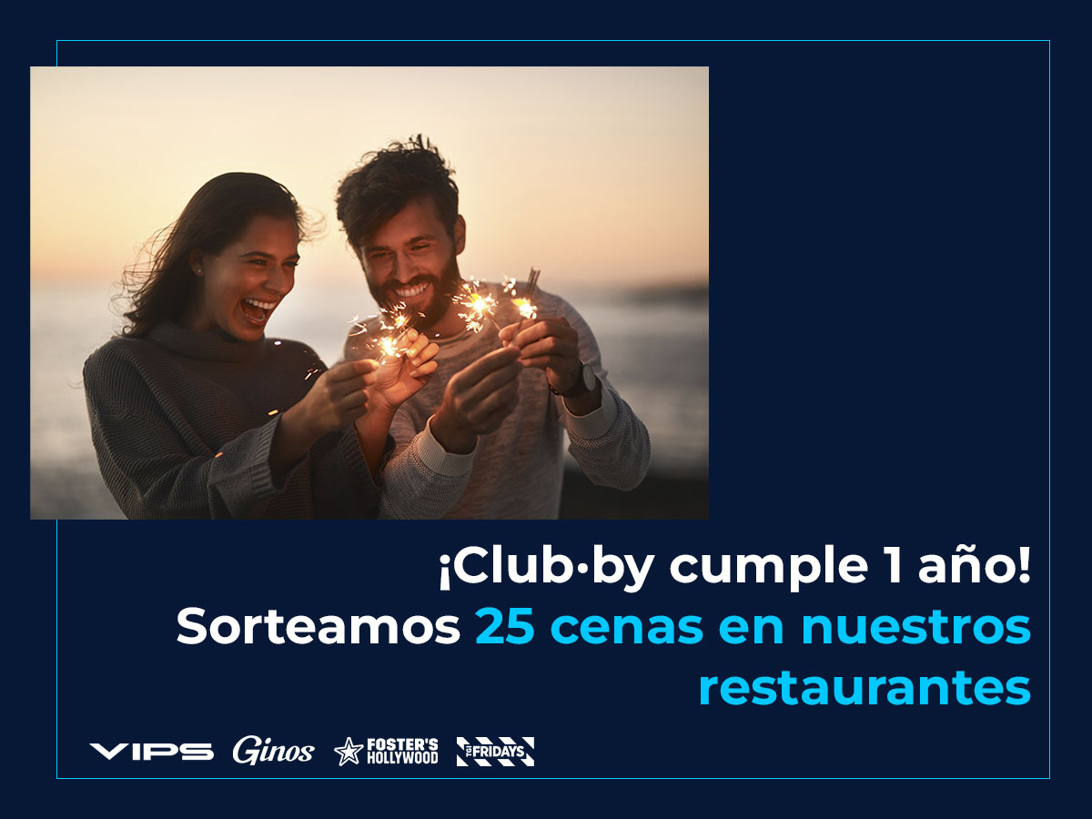 Consigue una de las 25 cenas que sorteamos para que disfrutes en tu restaurante favorito de Club·by. Participa y disfruta de tus platos preferidos de VIPS, Foster's Hollywood, Ginos o Fridays.